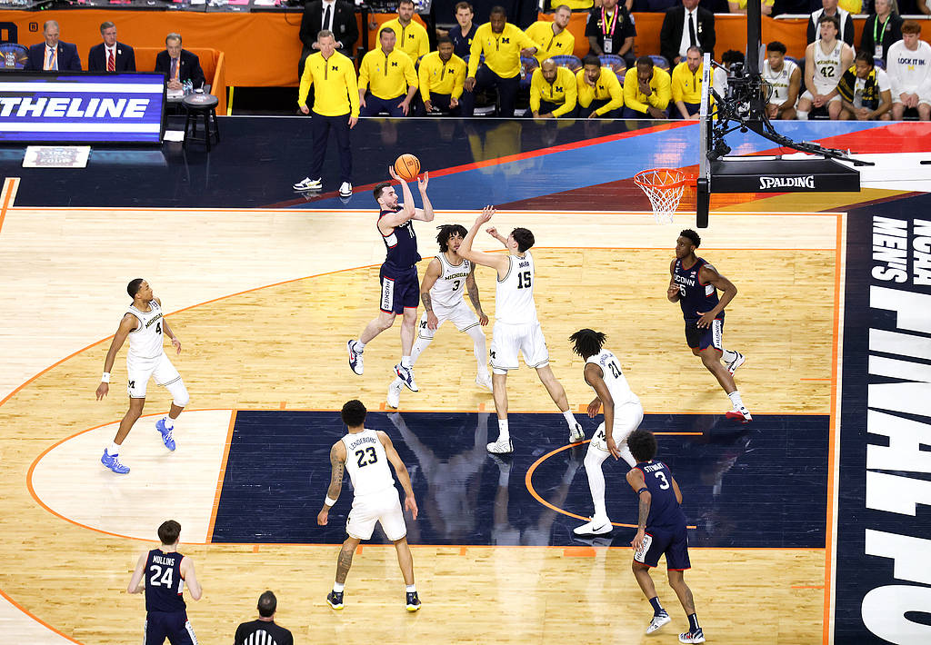 上半场开打,小莫雷兹-约翰逊攻筐得手,密歇根大学率先开张。但很快,塔里斯-里德勾射入网,康涅狄格大学还以颜色。此后,密歇根方面始终保持着比分上的微弱优势,约翰逊和后场的埃利奥特-卡多成为密歇根的进攻箭头。康涅狄格这边,则是靠着大四锋将亚历克斯-卡拉班的三分努力咬住比分。